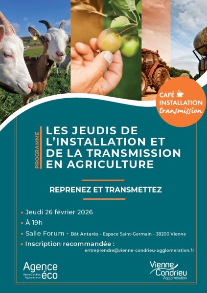 Dans le cadre de la 4ème édition des Jeudis de l’installation et de la transmission agricole, l’Agglo propose une soirée avec des agriculteurs ayant des projets de transmission, ou ayant transmis leur ferme, et des porteurs de projet à l’installation.