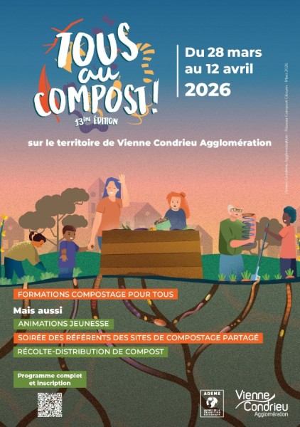 Dans l'objectif d'intensifier et d'améliorer le compostage de proximité sur l'ensemble du territoire, cette année, Vienne Condrieu Agglomération organise sur son territoire plusieurs actions de sensibilisation pour permettre à un large public de mieux comprendre comment composter, mais aussi de mieux appréhender les enjeux du compostage.